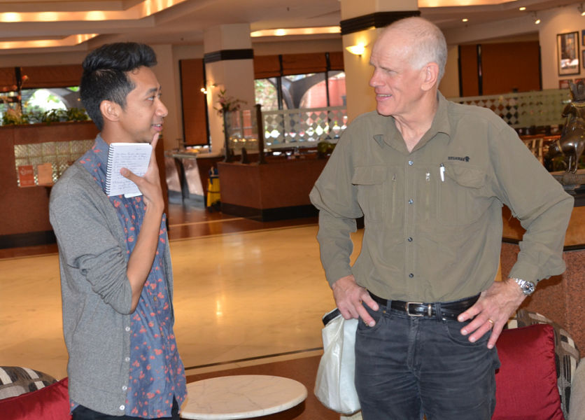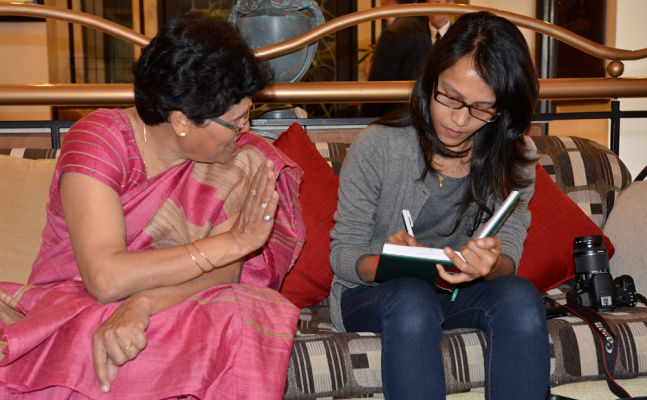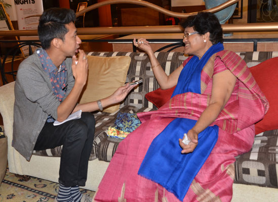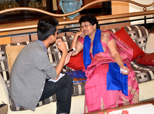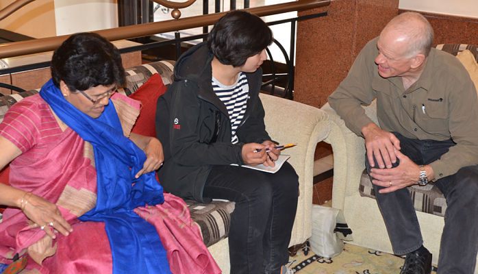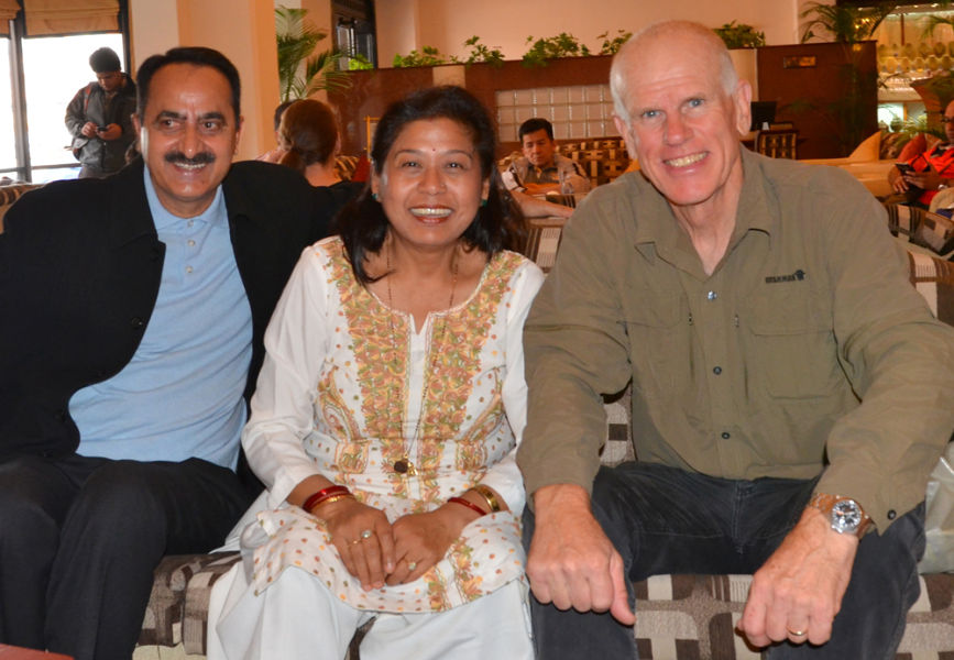On the morning of March 17, 2013, Dr. Harshwanti Bisht and Peter Hillary met with members of the press in the lobby of the Radisson Hotel, which generously provided a luxury suite for the Hillary Medal winner.