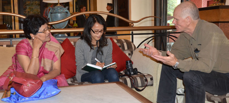 Bibek Bhandari interviewing Dr. Bisht and Peter Hillary for South China Morning Post.
