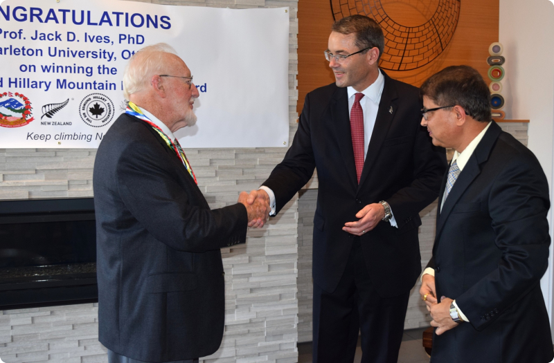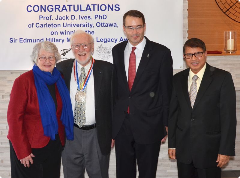 On October 29, 2015, Dr. Jack D. Ives received the first Lifetime Achievement edition of the Sir Edmund Hillary Mountain Legacy Medal at a luncheon hosted by New Zealand High Commissioner H.E. Simon Tucker and Nepal Ambassador to Canada, H.E. Mr. Kali Prasad Pokhrel.