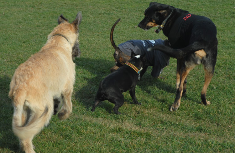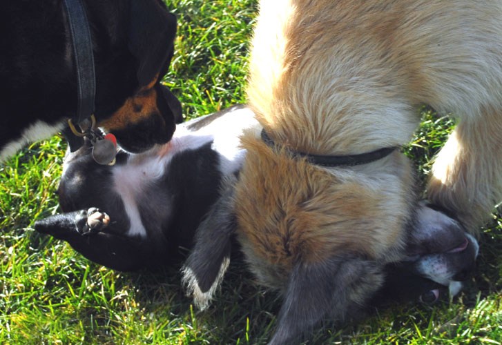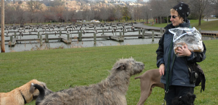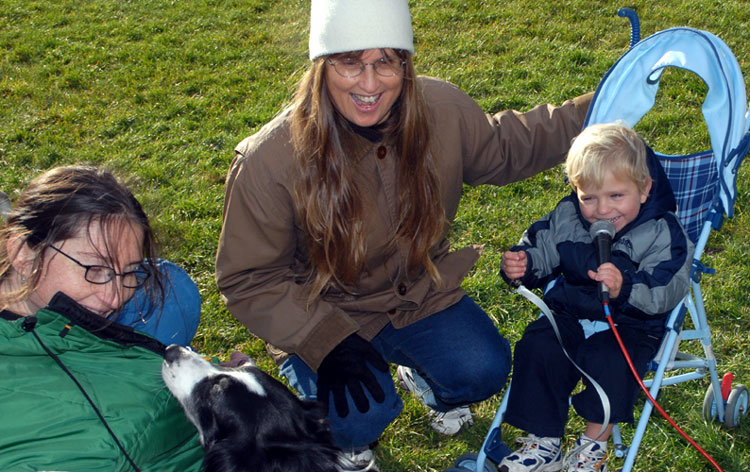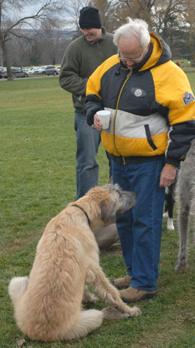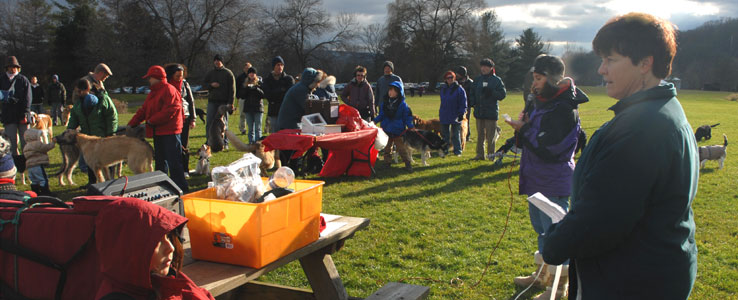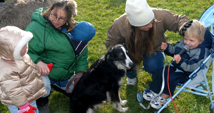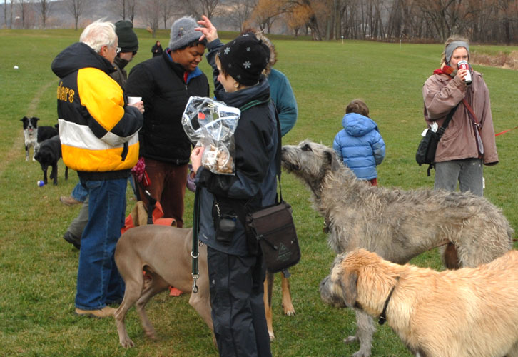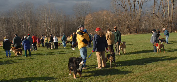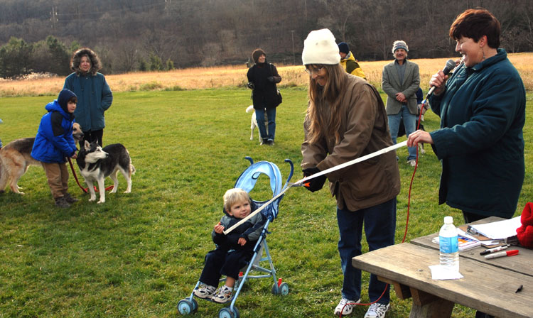 The Petersons cut the leash, signifying the temporary exemption of Ithaca's Festival Lands (a.k.a. the dog park) from Ithaca's leash ordinance.