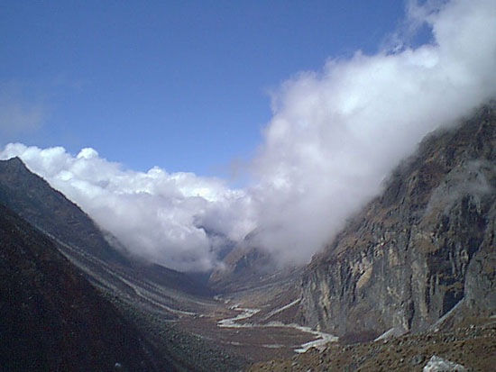 A third general factor that has contributed to the relatively unimpacted state of Rolwaling Valley has been the government's limitation of tourist access. Until 2002, you needed both a trekking peak permit and a regular trekking permit. The trekking peak permit involved costs and other factors that essentially excluded the possibility of independent trekking. All visitors arrived in self-contained tented caravans which contributed virtually nothing to the economy of Rolwaling villages. Therefore there has been very little development of infrastructure, and not much impact on the environment.