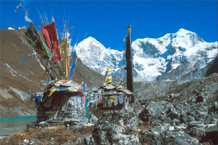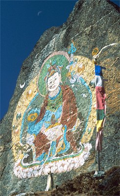 Cultural factors have contributed to the conservation of species in Rolwaling. According to Tibetan Buddhism, about 1250 years ago Padmasambhava [aka Guru Urgyen Rinpoche] plowed the valley out of the mountains in order to serve as one of eight beyul, refuges that were to remain hidden until, in a time of religious crisis, they would serve as sanctuaries, protecting dharma until the danger passed. The neighboring Khumbu was one such zone, and Rolwaling, in the shadow of the mountain abode of the goddess Tseringma (i.e.Gauri-Shankar), was another. Unlike Khumbu, Rolwaling remained unvisited and unimpacted until the nineteenth century, and then by a very few wanderers and outcasts. Due to the limited amount of arable land and the unsuitability of this east-west valley as a trade route between Tibet and India, Rolwaling’s inhabitants remained poor and few, but devoutly mindful of their spiritual heritage. The Buddhist bans on hunting and slaughter, elsewhere observed less scrupulously, have protected the fauna; even plants are considered living creatures which ought not to be harmed if possible.